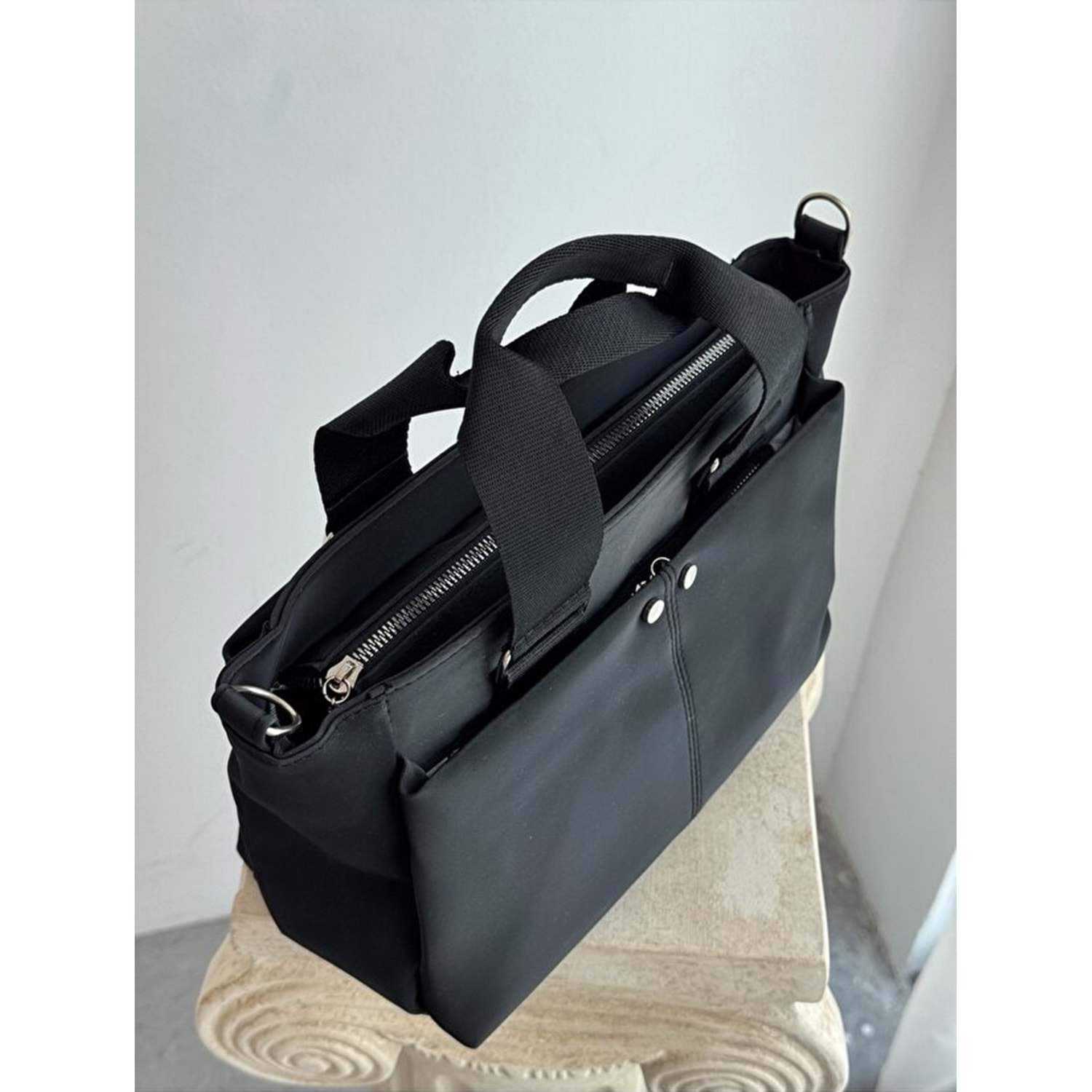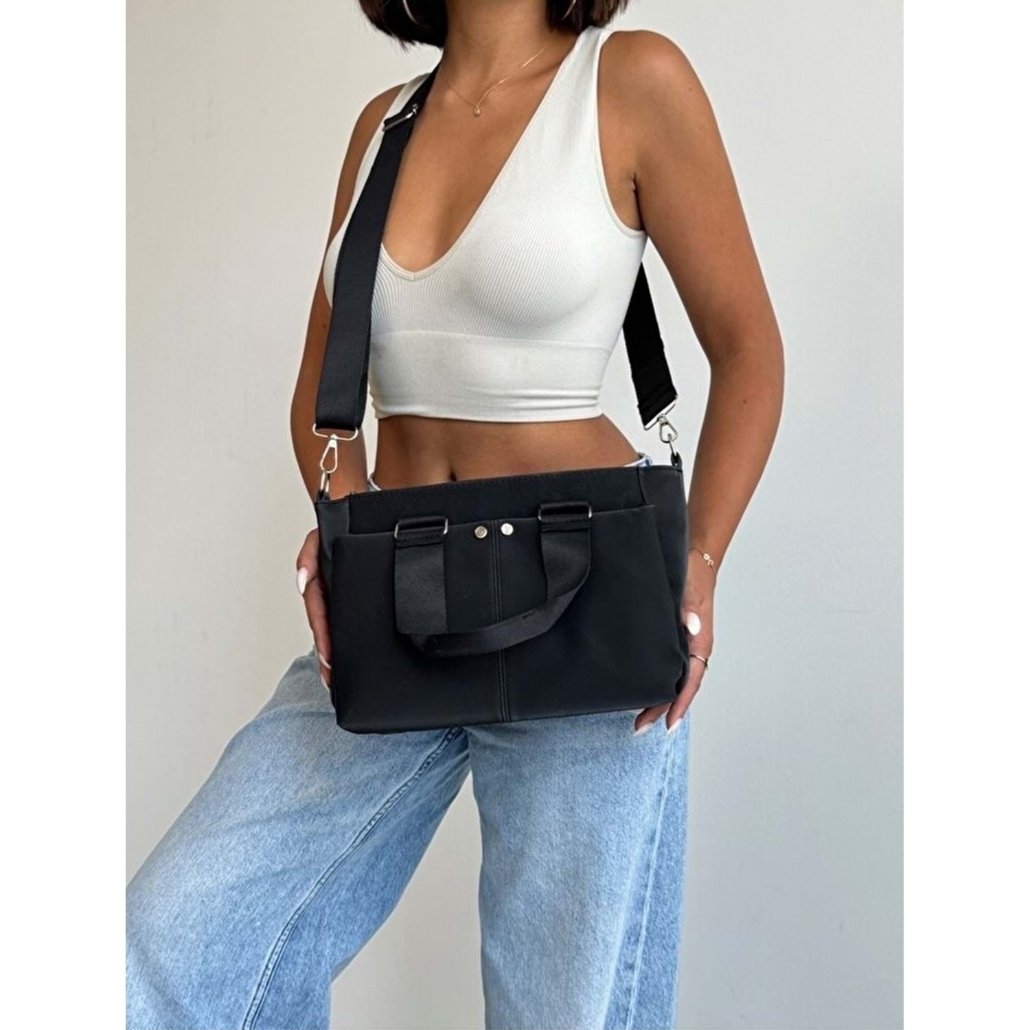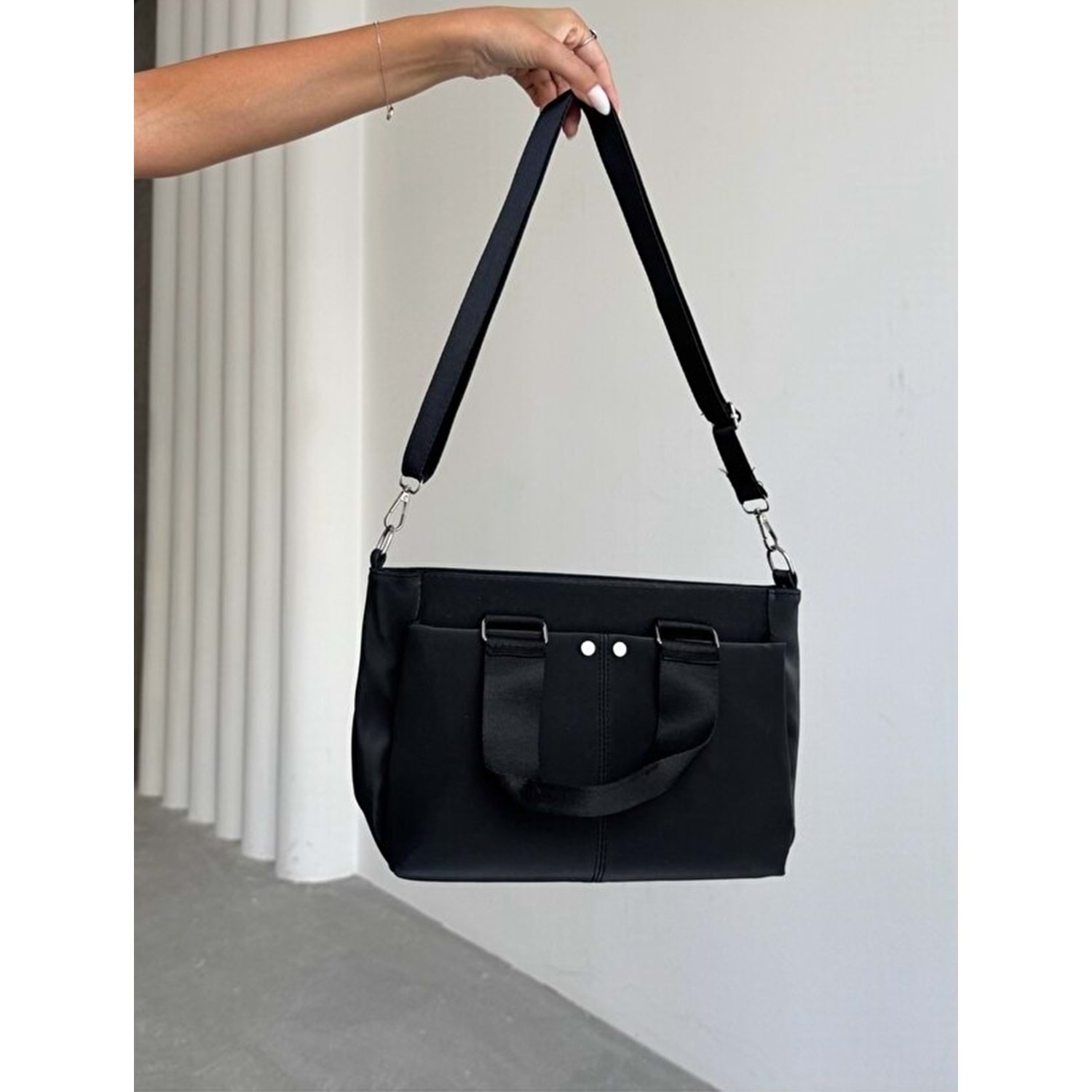 1070 Kadın Saten Çok Cepli Çapraz El ve Omuz Çantası - SİYAH