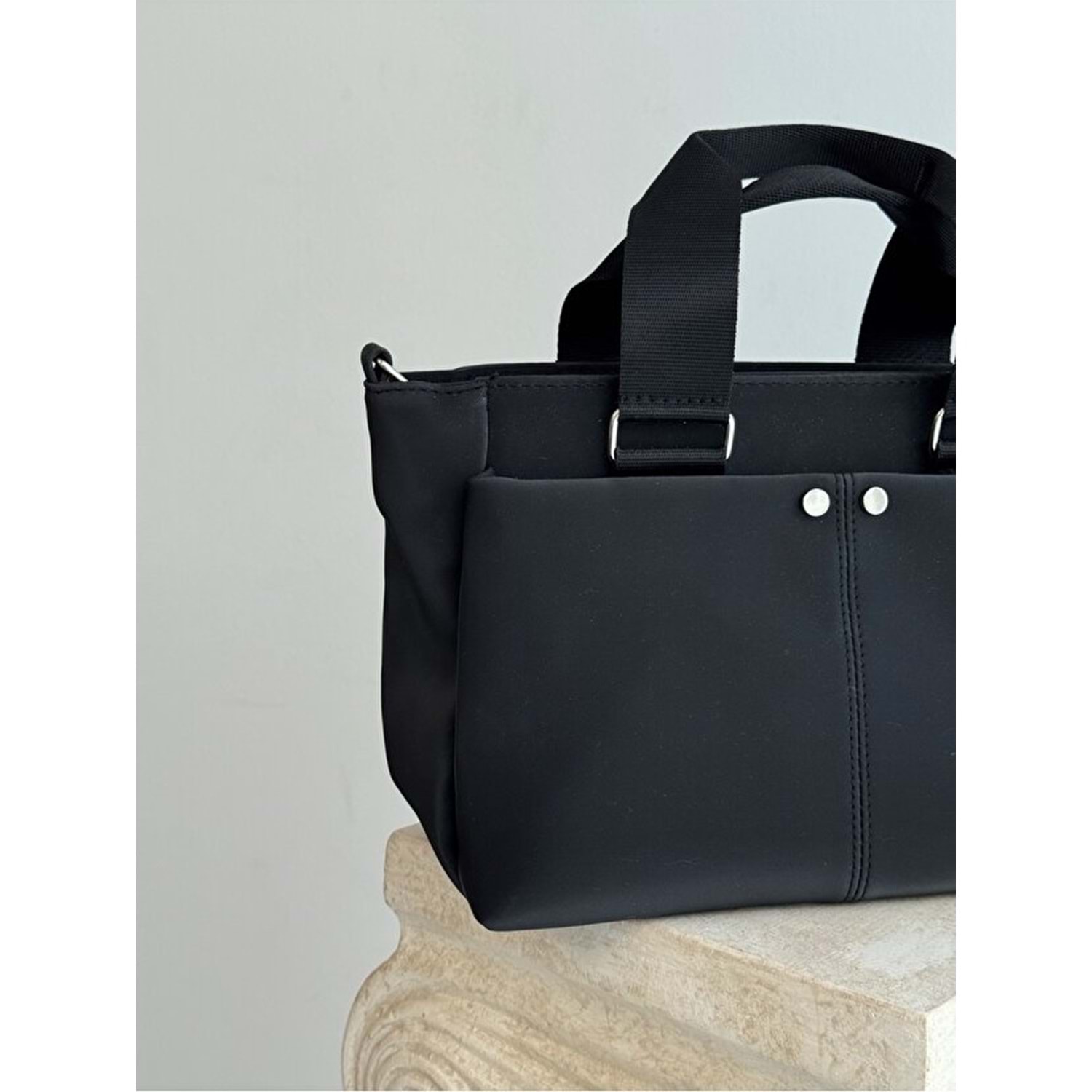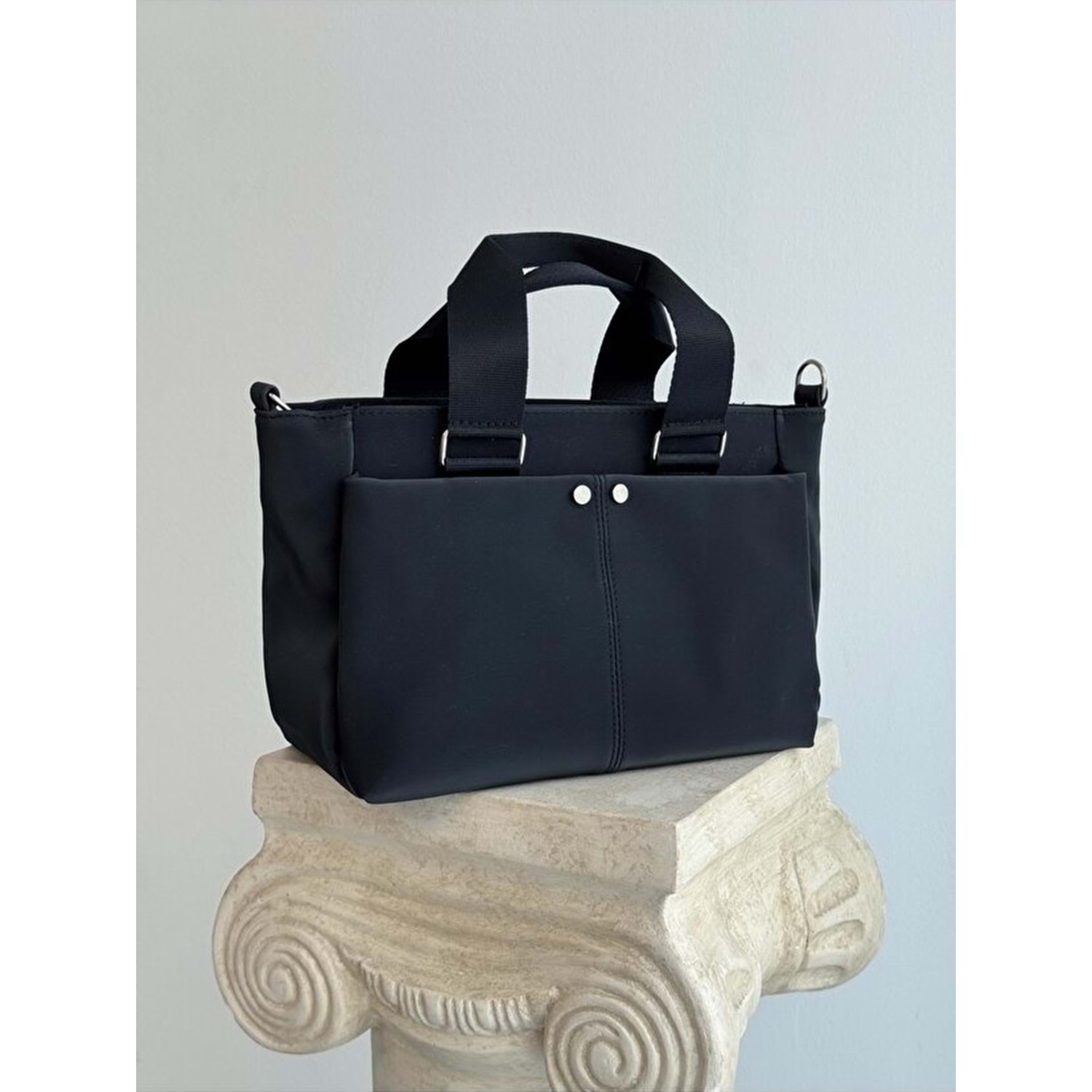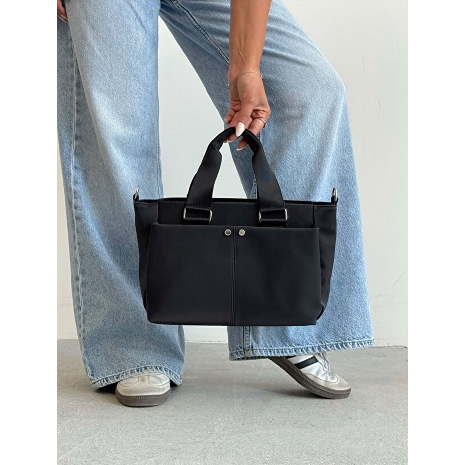 1070 Kadın Saten Çok Cepli Çapraz El ve Omuz Çantası - SİYAH