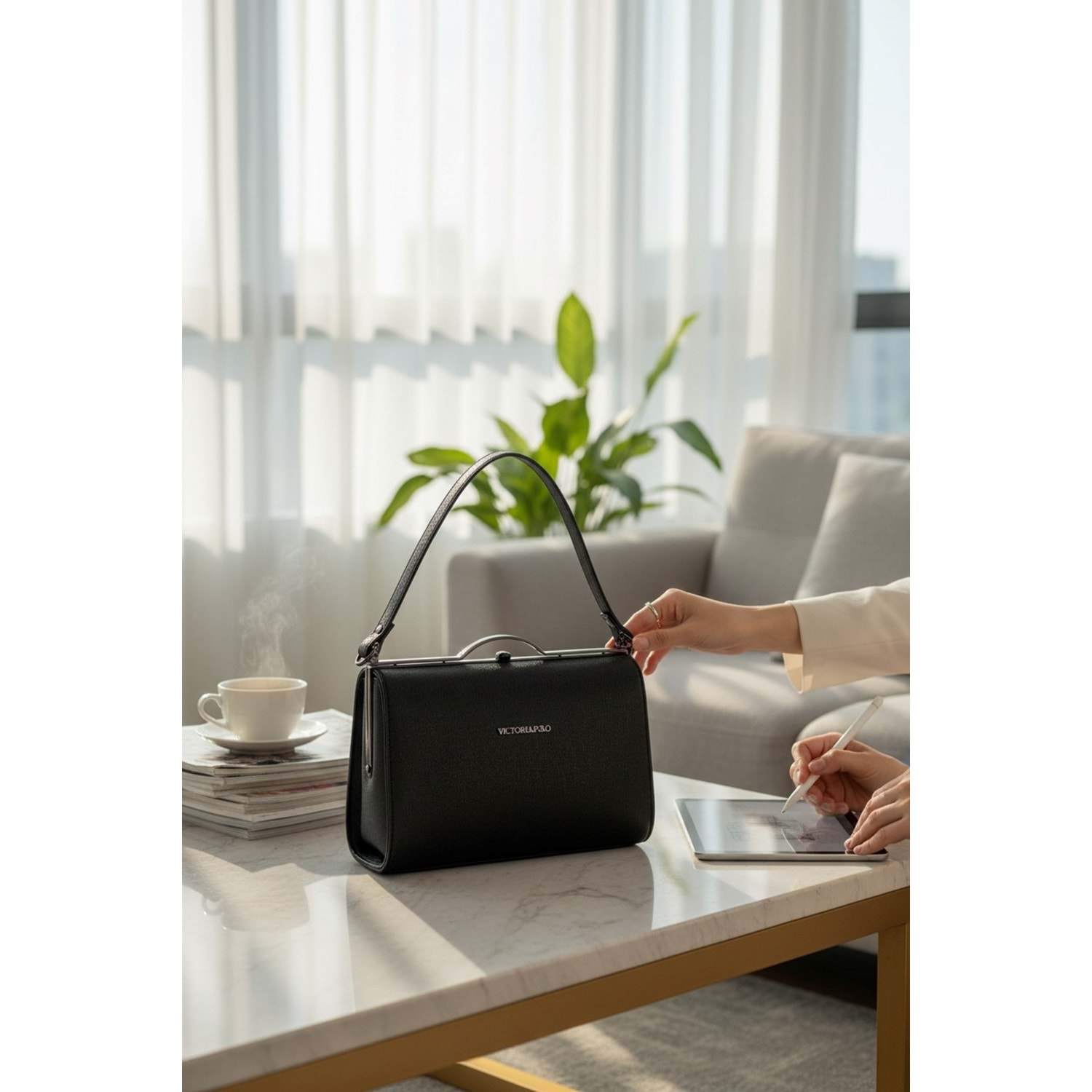1090 Kadın Kutu El ve Omuz Çantası - SİYAH