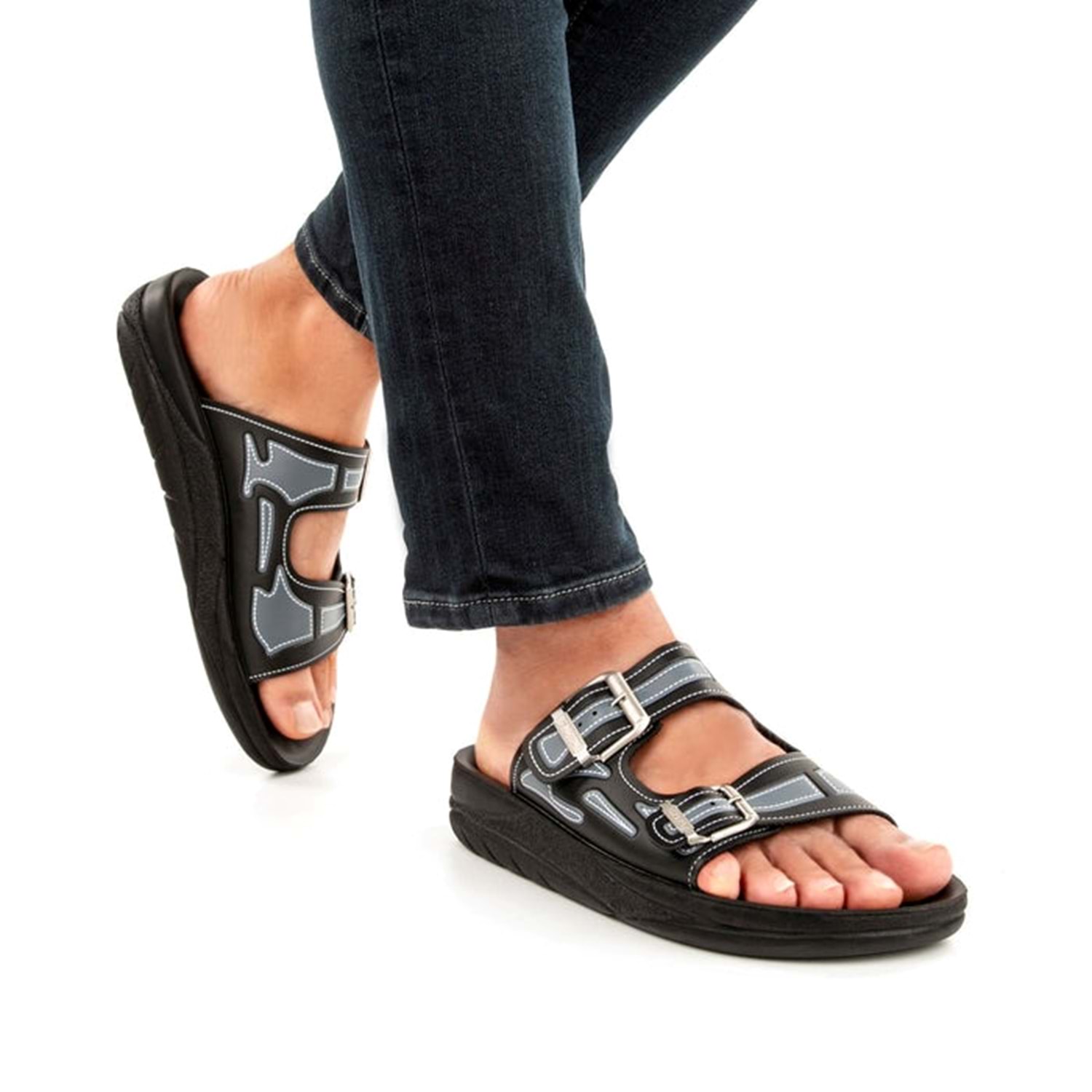 Muya Sports Anatomik Taban Dört Mevsim Erkek Terlik - Siyah-Gri - 40