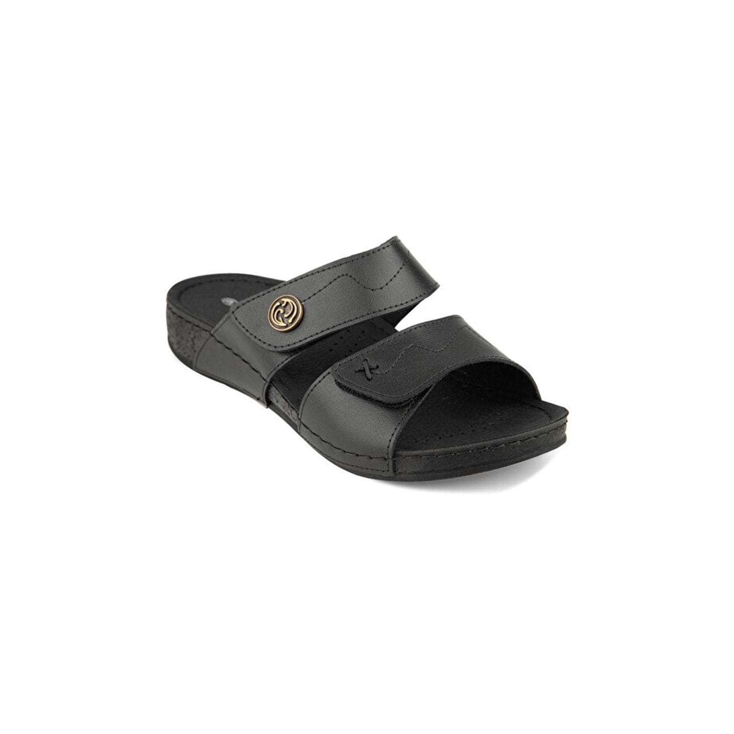 Muya Lembut Anatomik Taban Dört Mevsim Hakiki Deri Kadın Terlik - Siyah - 40