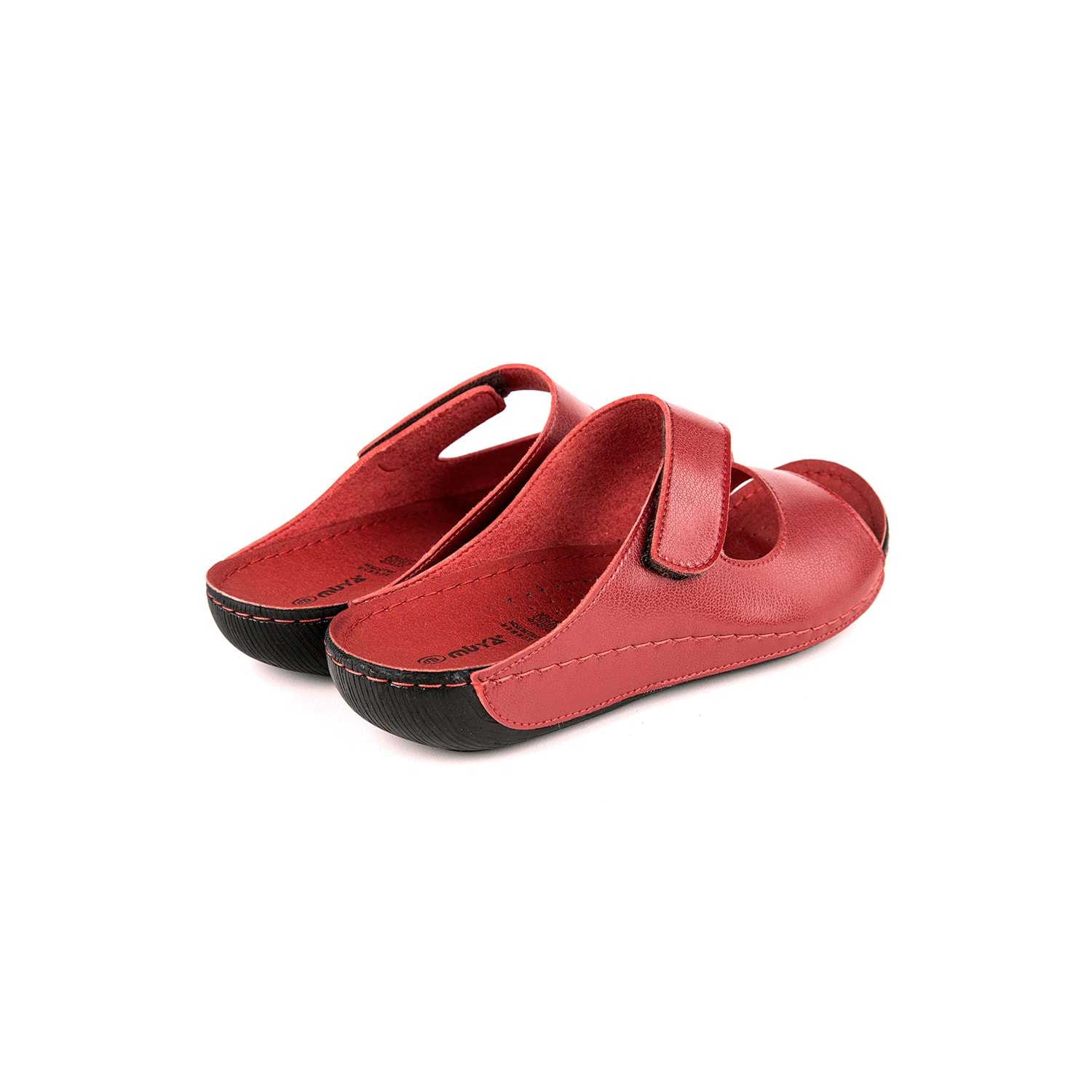 MUYA SOLENA terlik anatomik tabanı ve yumuşak doku teknolojisinin sağladığı hafiflik ve rahatlıkla ayağı yormaz. Bu klasik modelimiz ayarlanabilen cırtlarıyla tüm ayak tiplerine uygun, son derece rahat bir terliktir.